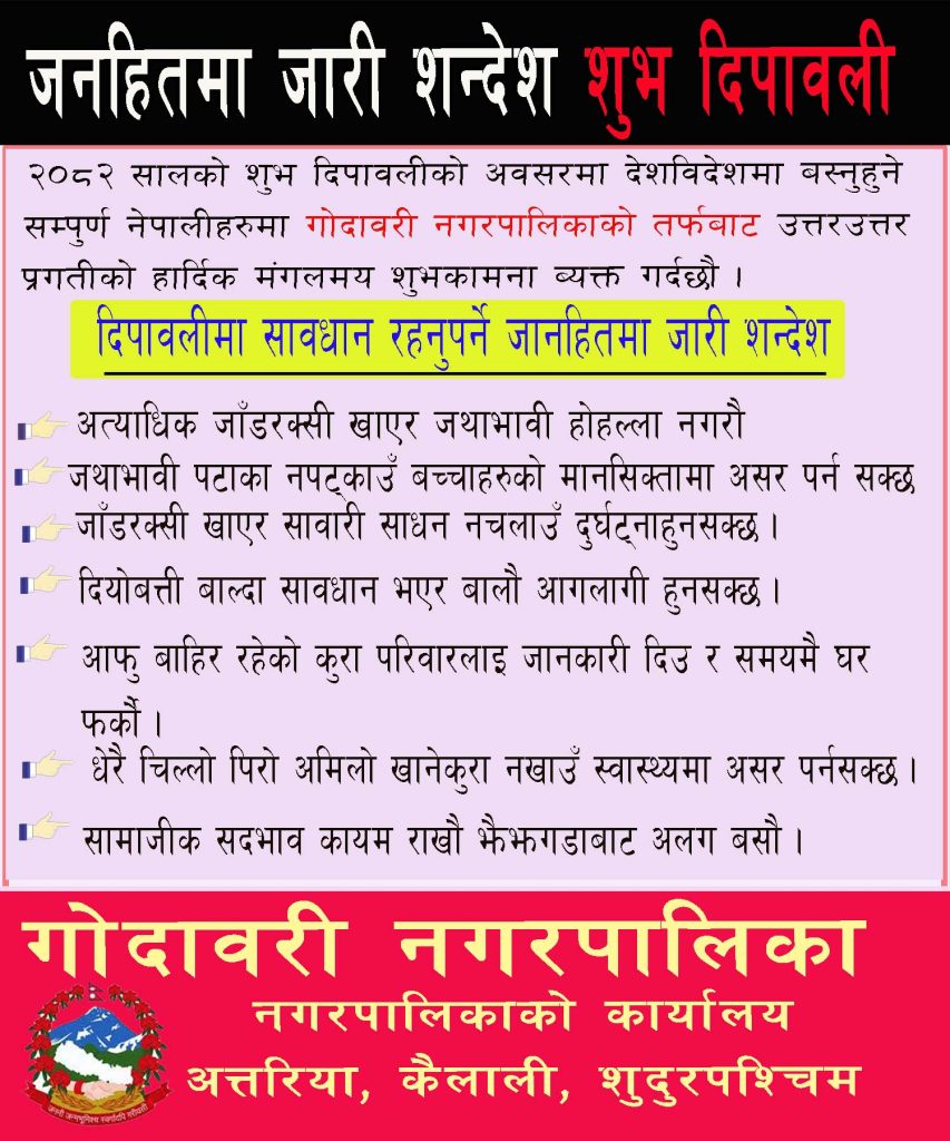 कैलालीको गोदावरी नगरपालिकाले भाइटिकाको दिन (कार्तिक ६ गते) यात्रुहरूको सुविधाका लागि नि:शुल्क बस सेवा सञ्चालन गर्ने निर्णय गरेको छ। यस सेवामा नवजीवन अस्पताल, धनगढीको सहयोग रहनेछ।