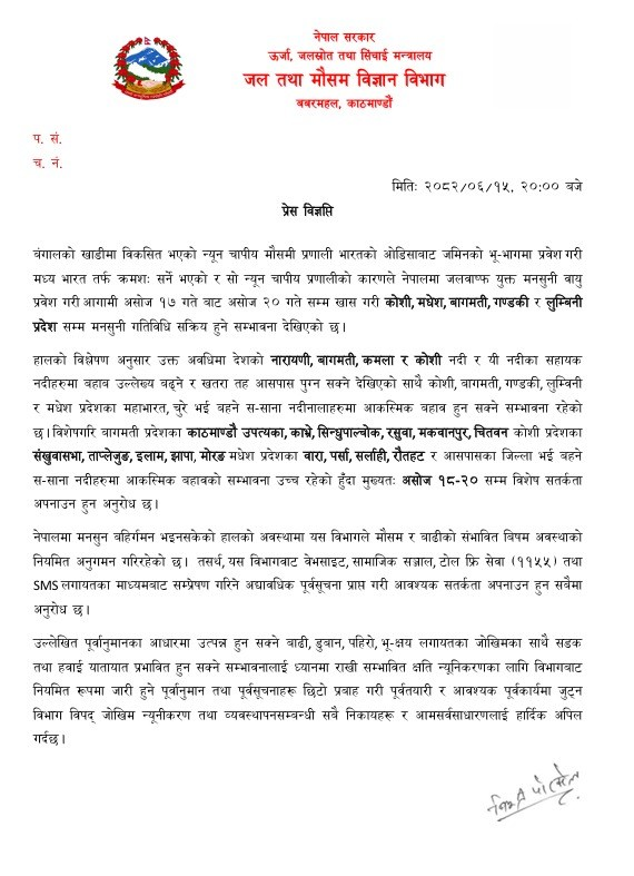 जल तथा मौसम पूर्वानुमान महाशाखाका अनुसार इलाममा पछिल्लो २४ घण्टामा ३२५.२ मिलिमिटर वर्षा मापन गरिएको छ, जुन औसतभन्दा तीन गुणा बढी हो। मौसममा शनिबार दिउँसोदेखि नै असामान्य परिवर्तन देखिएको थियो। बेलुकासम्म मध्यम खालको वर्षा भइरहेकोमा राति १० बजेपछि ‘आरी घोप्टे’ शैलीमा पानी खनिन थाल्यो। यो वर्षा राति २ बजेसम्म निरन्तर रह्यो।